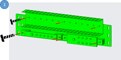 | 1 | 請參考圖3,面板(H)與動力端子台(C ) 或(D),使用M3自攻螺絲(B)鎖固. | 安裝在機櫃左上(LEFT SIDE)門內, 需要預組裝:三組 |